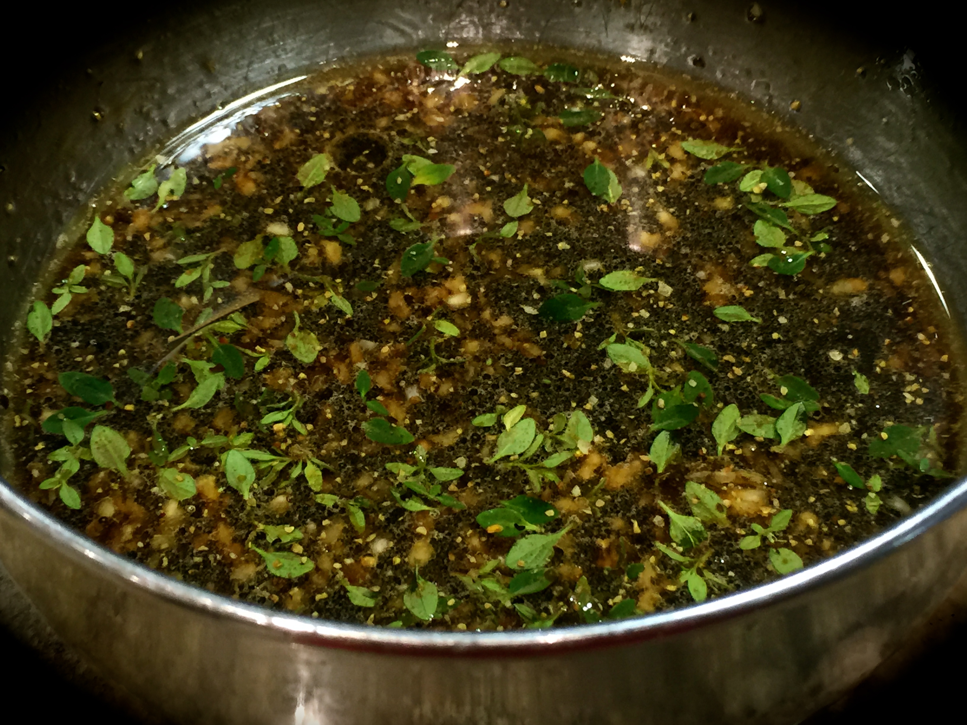 Put the brown sugar, soy sauce, water, oil, garlic, thyme and lemon pepper into a bowl. Whisk completely making sure to incorporate all of the brown sugar into the liquid.