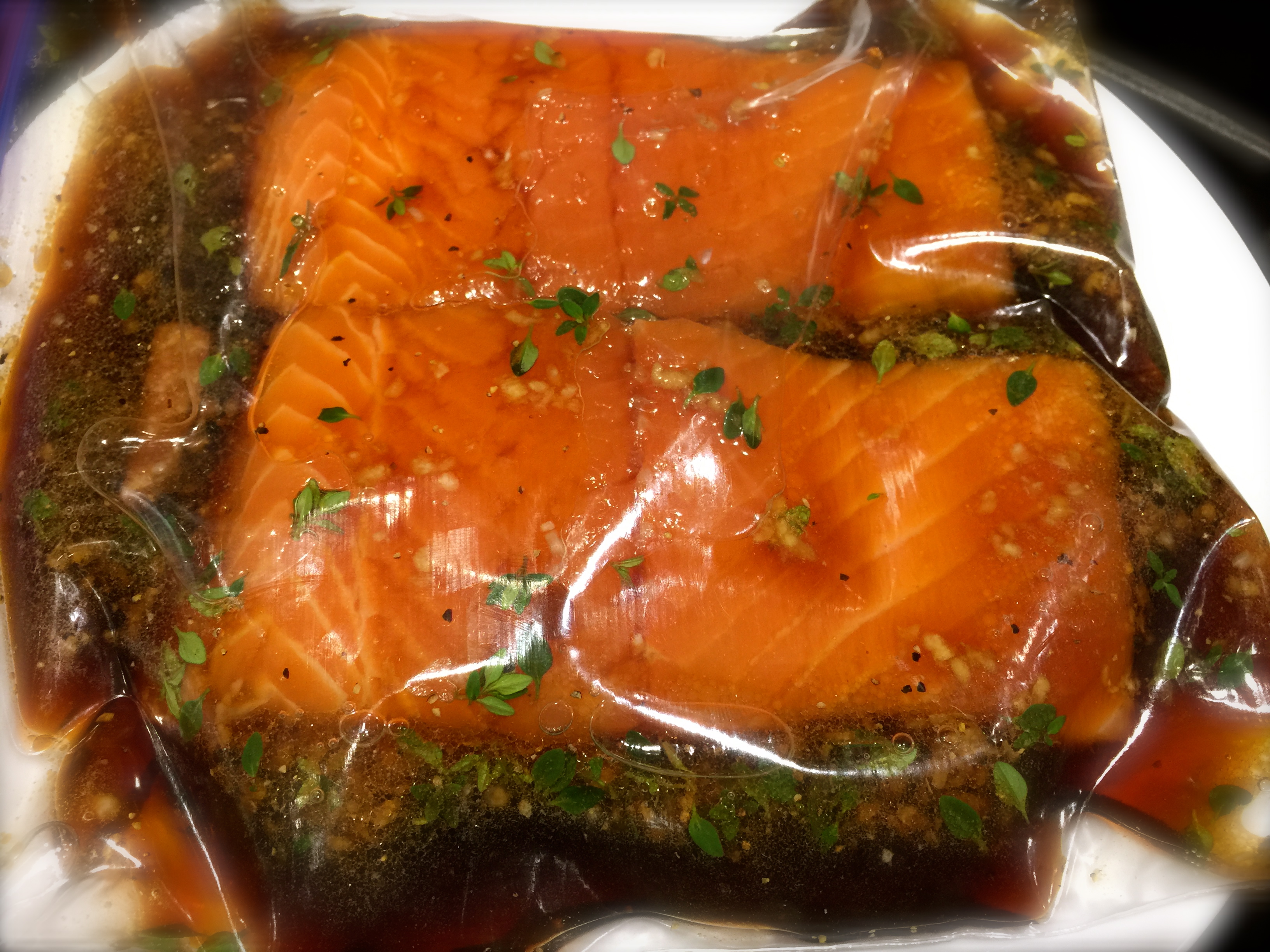 Place the salmon filets into a resealable bag. Pour the marinade over the filets. NOTE:  You may need to use a spatula to get the residual brown sugar from the bottom of the bowl into the bag. It is important that as much brown sugar as possible is in the marinade mixture while the filets are marinating. Marinate the filets for 3-4 hours.