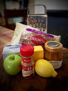 Lesson Learned 2 – Leave the skin on the apple and dice it into small pieces: I always love when recipes state “dice the apple into 1/4 inch pieces. Do people really expect cooks to stand with a ruler measuring the size of the pieces they cut up? (ok, I’ll admit it I’ve done it in the past but no more)… The key here is to keep the pieces slightly smaller than bite size. Trust your instincts. You want the apple pieces to blend in and not overpower the look and taste of the cheese ball.