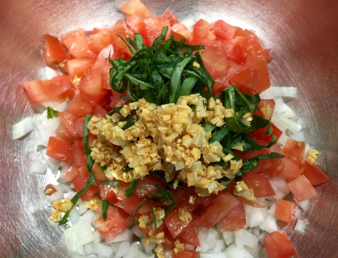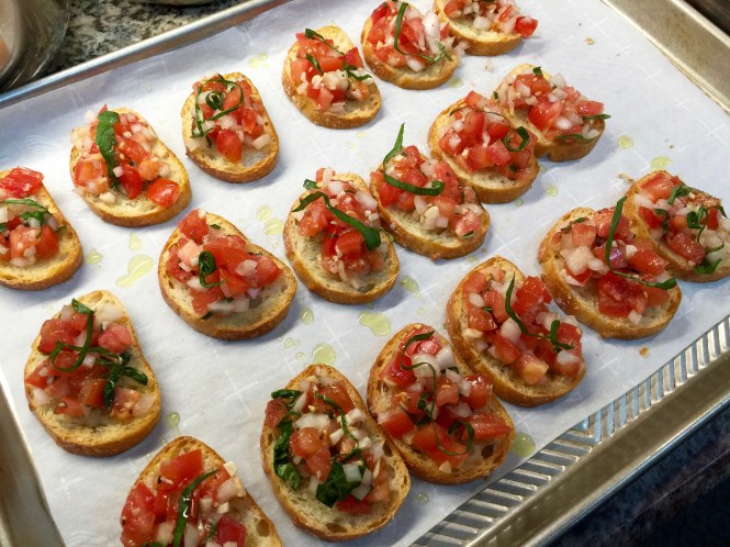 Lesson Learned 3 – The tomatoes used in this recipe are very important: Using the wrong kind of tomatoes can make your bruschetta soggy. You need a tomato that is ripe but firm. Any tomato will be watery so you want to minimize that as much as you possibly can.