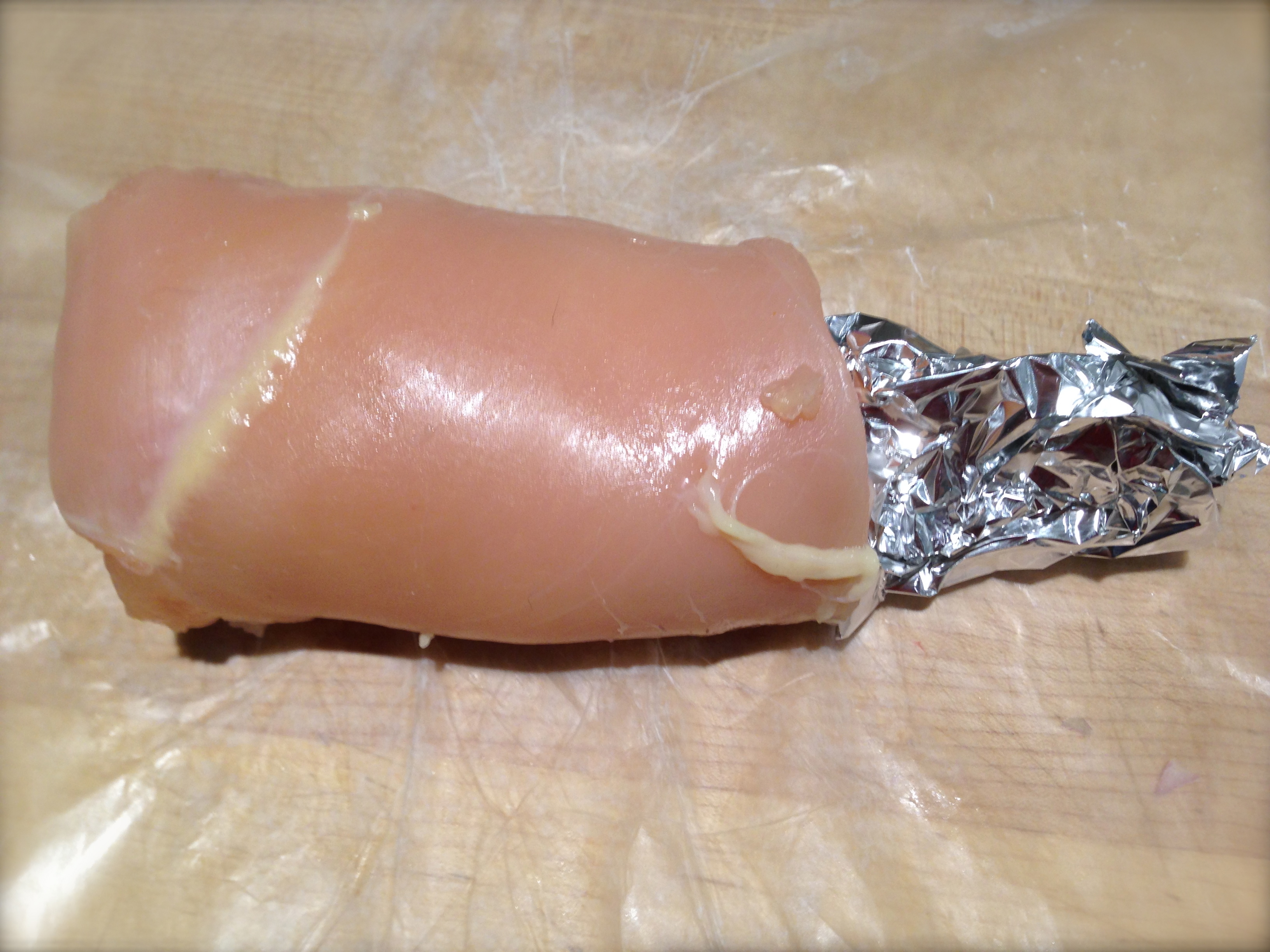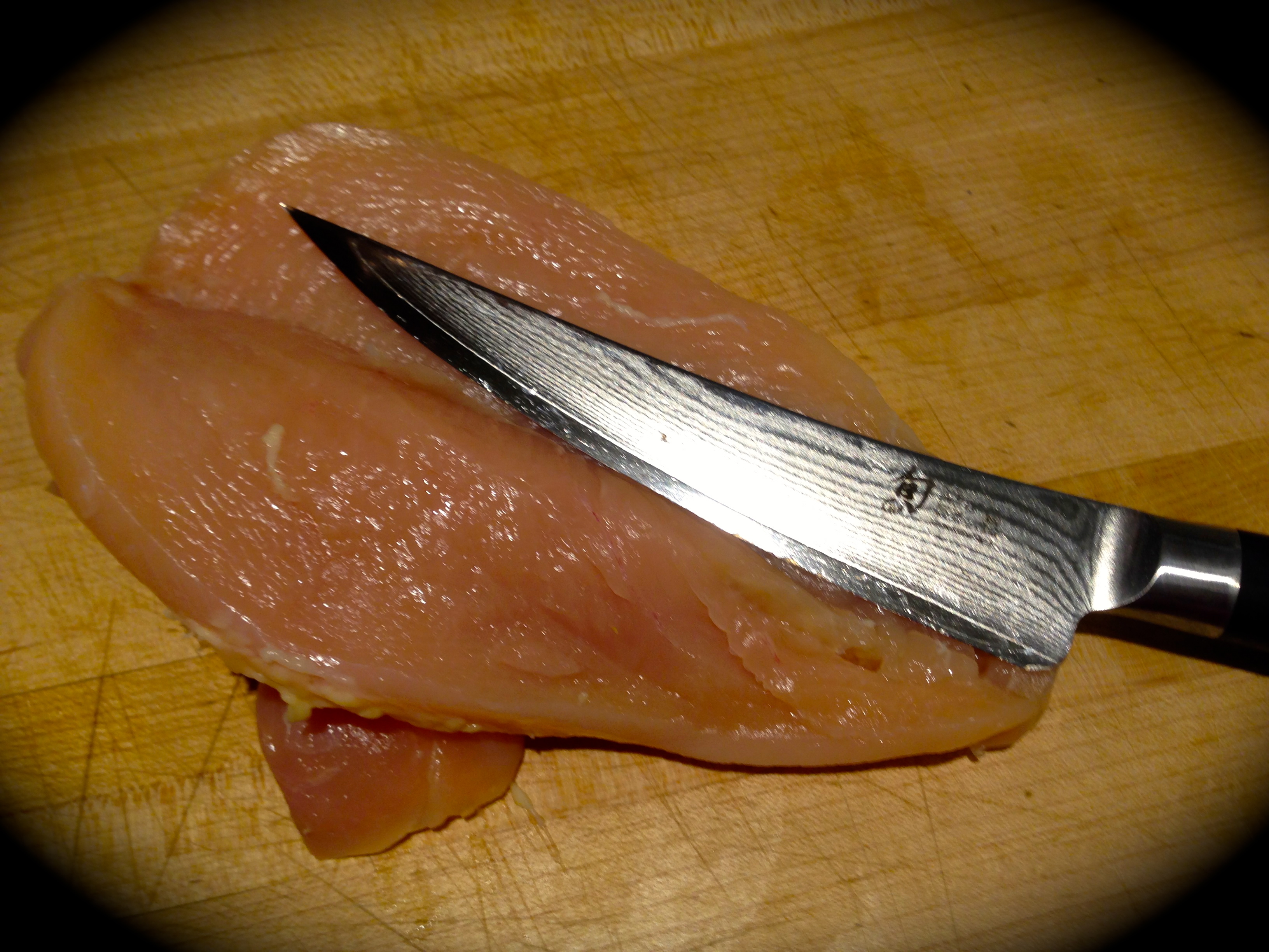 Lesson Learned 1 – Buy chicken breasts with skin and ribs and debone the chicken yourself: You want to do this for a couple of reasons. First it is much less expensive to buy chicken this way. Second by leaving the skin on it keeps the breast nice and moist during the slow roasting process. Invest in a good boning knife and regularly maintain it with a hand sharpening tool like the one pictured to the left. It is surprisingly inexpensive and will keep your knife nice and sharp for a long time and boning the chicken breasts will be a breeze. These days it’s pretty hard to find boneless breasts with the skin still on so this may be the only way to do it.