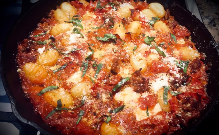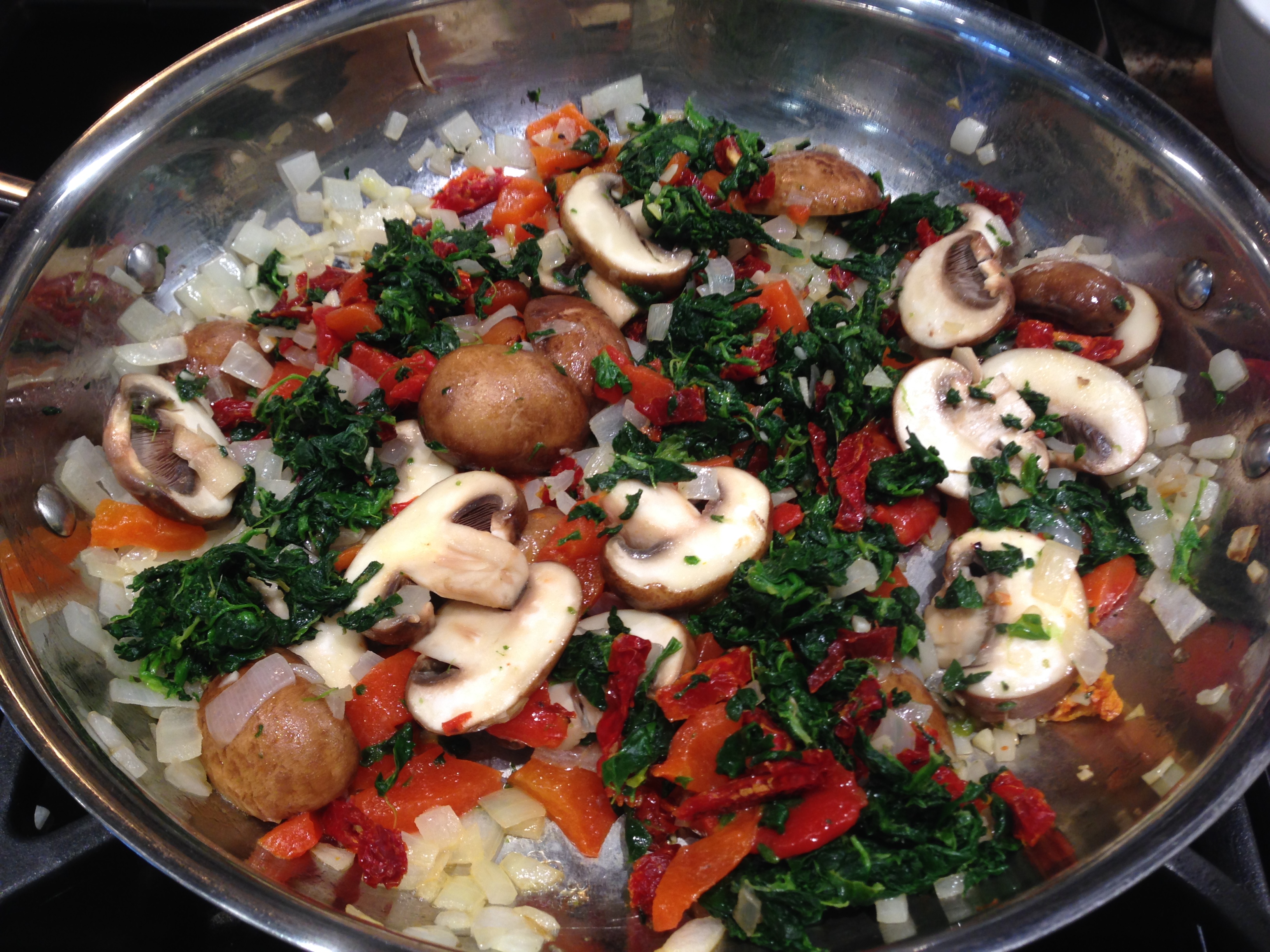 Lesson Learned 2 – Adapting this recipe: I originally wanted to use some spinach in this recipe but didn’t have it on hand and didn’t feel like going to the grocery store to buy some. But I did have some flat leaf parsley and so I used that. If you use spinach just saute it with the onions and only use a couple of handfuls. The spinach should act as the accompaniment to the recipe and shouldn’t overpower it. The same applies to flat leaf parsley. I only used a little more than a tablespoon (and of course I used some for garnish), just enough to enhance the flavor.
