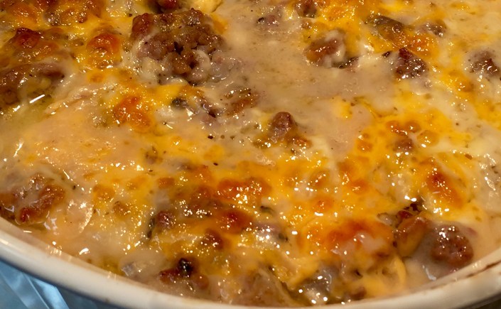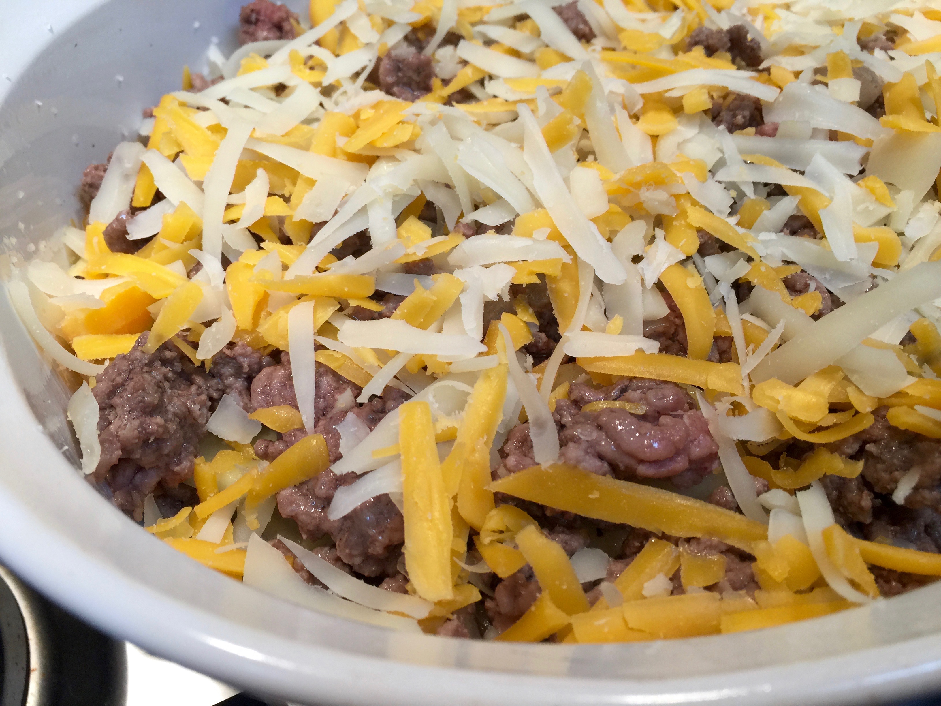 Lesson Learned 3 – Feel free to experiment with this recipe: Add ingredients to the ground beef that you and your family like. If you don’t like mushrooms, don’t use them. If you like sweet peppers, dice them up and use them. If you’re not a big fan of spicy don’t use the hot sauce. But if you want some real tang add some crushed red pepper to the beef. If you prefer pearl onions, add them. You can use cheddar cheese instead of muenster cheese (I find cheddar cheese to be somewhat greasy) or any melting cheese you prefer. The beauty is this recipe can be very versatile to include anything you enjoy.