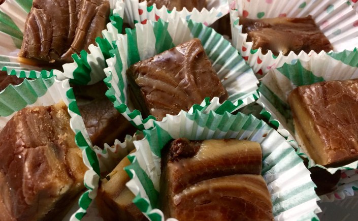Lesson Learned 2: Butterscotch morsels don’t melt as quickly as chocolate morsels: I started melting the morsels in the microwave, stirring them every 30 seconds. After a couple of minutes of doing this process I saw it was losing battle. I made a makeshift double boiler using a sauce pan and a glass bowl and melted the morsels that way. It still took a little time but the process moved much more quickly than in the microwave.
