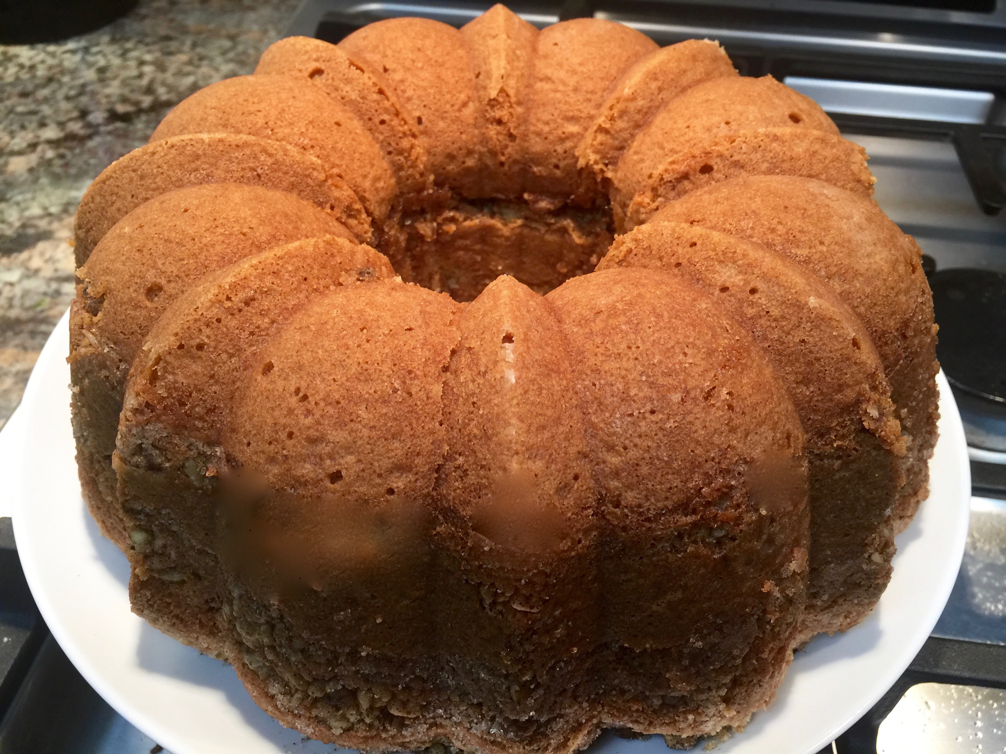 Lesson Learned 3 – Watch the time on this cake carefully: Ok, I’ll admit it – I had to make this cake twice to get it right. This cake, depending on your oven and what part of the country you live in, can bake from 50 minutes to 1 hour and 10 minutes. And let me tell you, it can go from moist to dry rather quickly. So keep an eye on it. I use a professional grade loaf pan and so my cake baked in 50 minutes. The time you need will depend on your oven and the bakeware you use. Keep an eye on it starting at 50 minutes.