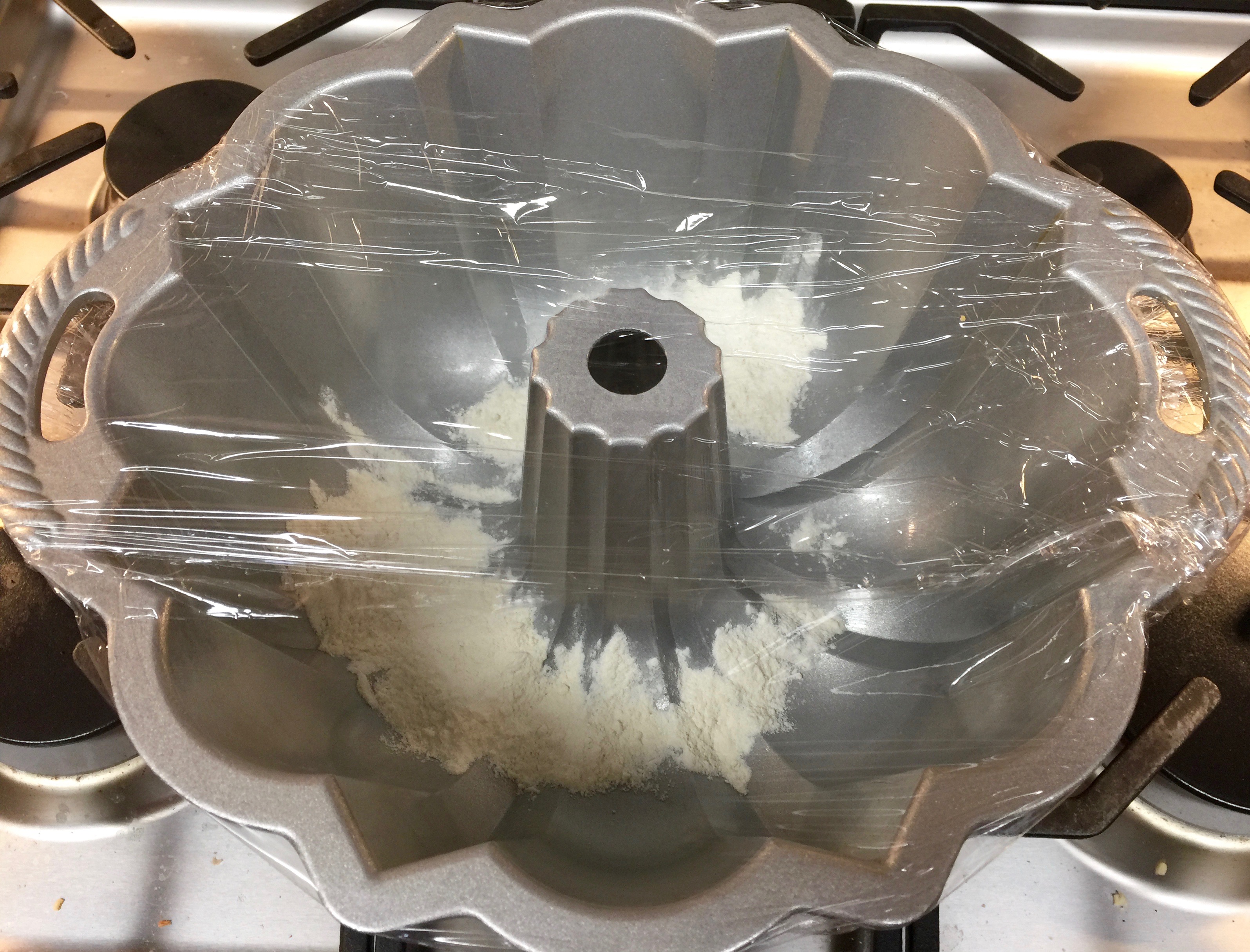 Lesson Learned 1 – The ingredients for the cake are a bit untraditional: Most cake recipes use a combination of baking soda and baking powder, usually a teaspoonful or less of each, as leavening agents for the batter. This particular cake recipe uses 4 teaspoons of baking powder and no baking soda. It seems like a lot of baking powder, but what that amount actually does is create a yeasty bread-like quality for the cake. You can see in the picture below the bubbles created by using the large amount of baking powder. It was interesting to see its affect on the batter. And when you think about it, cinnamon rolls tend to have a texture that’s more like bread than cake, so using the larger amount of baking powder to create that consistency makes sense.