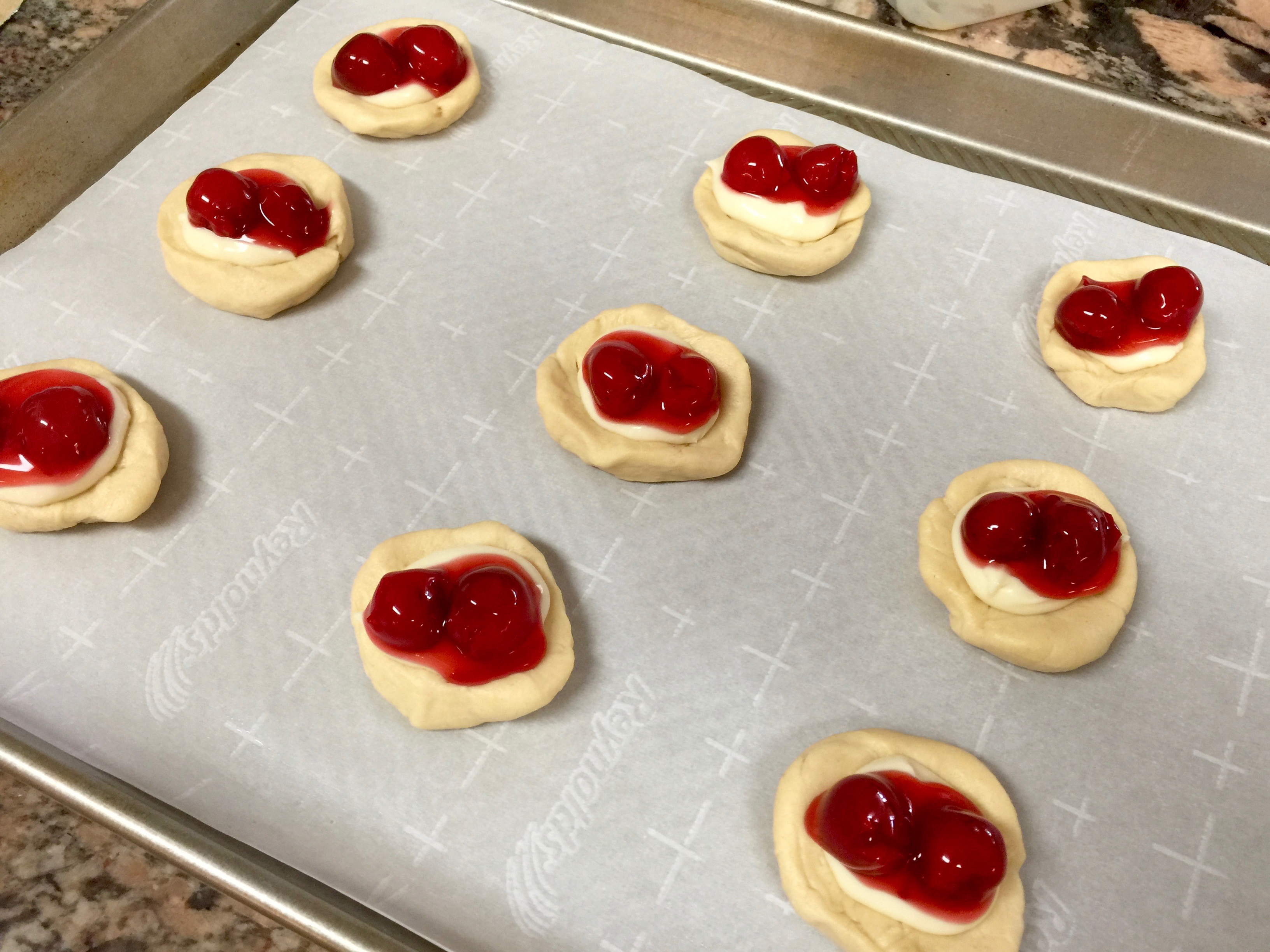 Preheat oven to 350 degrees. Using a hand mixer, mix all the cream cheese filling ingredients until smooth. Set aside.