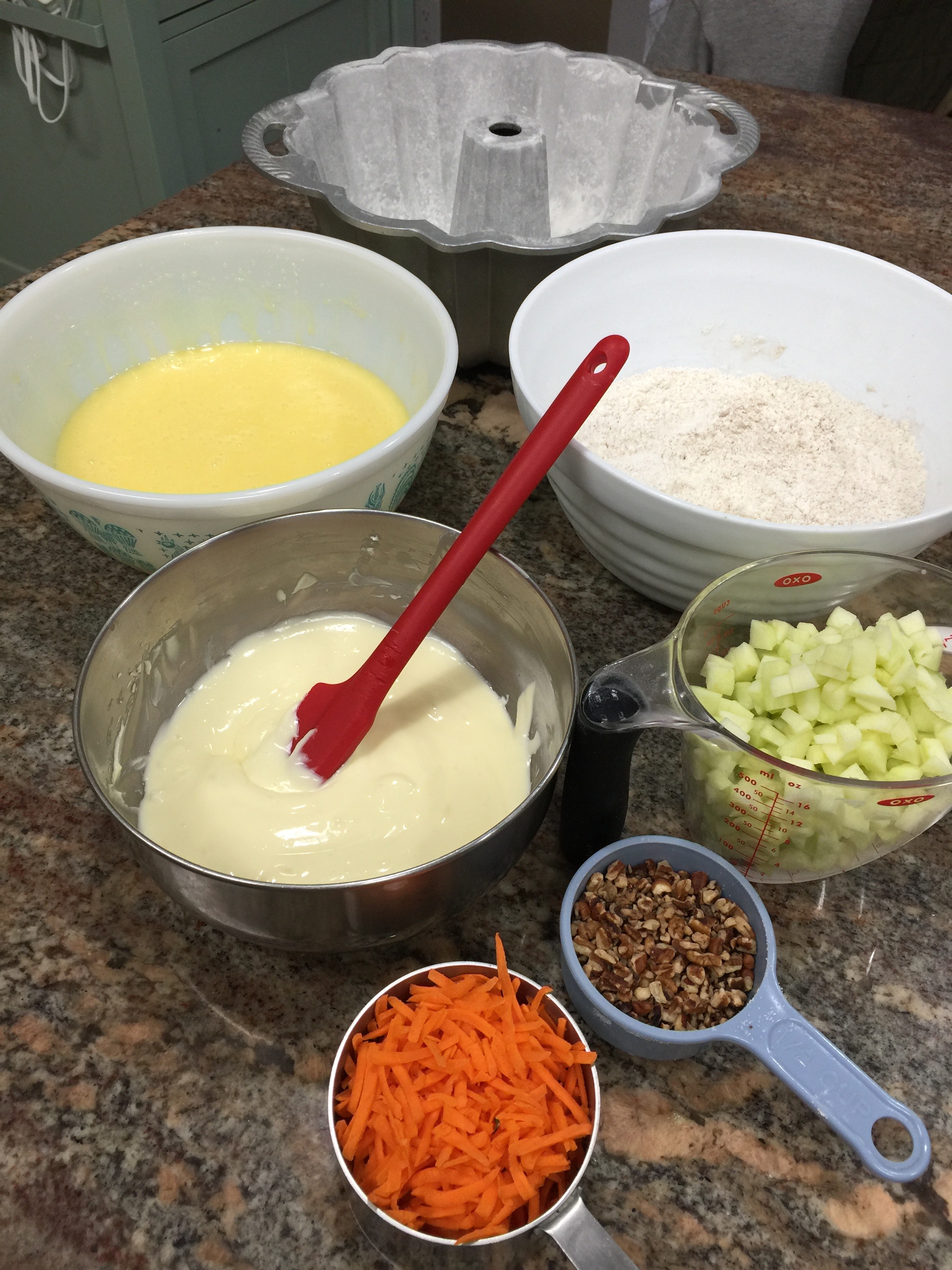Lesson Learned 3 – Don’t make the mistake I made: Every cook makes mistakes, even the most adept ones. I went about making this cake the way I normally bake or cook, prepping all of the ingredients first and then following the process. I did really well until I put the batter in the prepared pan and then realized I didn’t incorporate the baking soda into the batter. UGHHH!