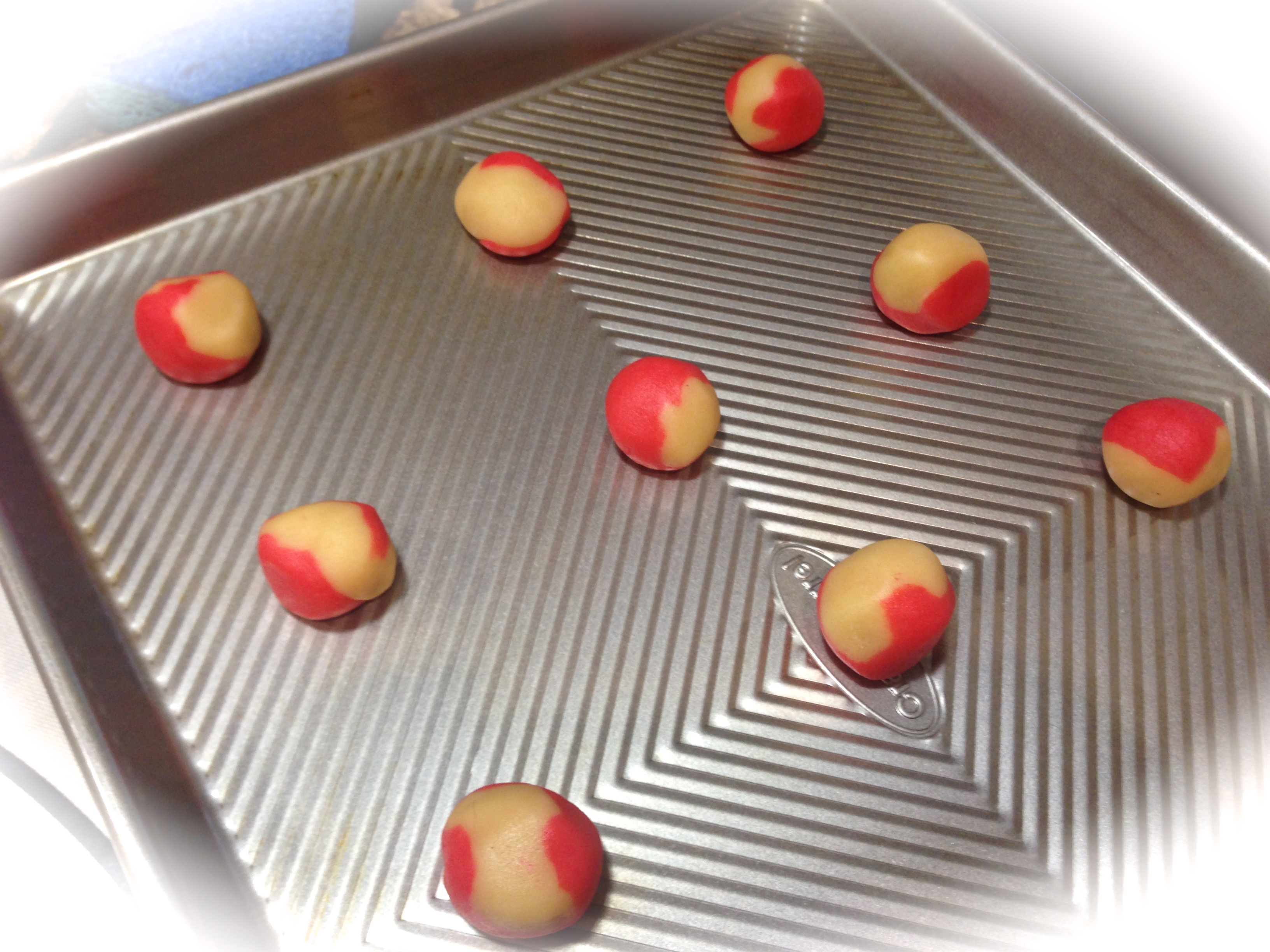Lesson Learned 1 – This recipe does not use any eggs: I know, I thought it was strange too but don’t worry the combination of ingredients works. You’ll find the dough looks a little different than most cookie dough – sort of like mashed potatoes (see the picture below). That’s ok – that’s what the dough needs to look like.