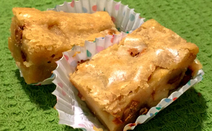 Lesson Learned 5: Depending on how many bars you want to give out, you may have to make this recipe a couple of times. You can make the bars big or small, but the most you’ll probably get out of this recipe is 24 small bars.