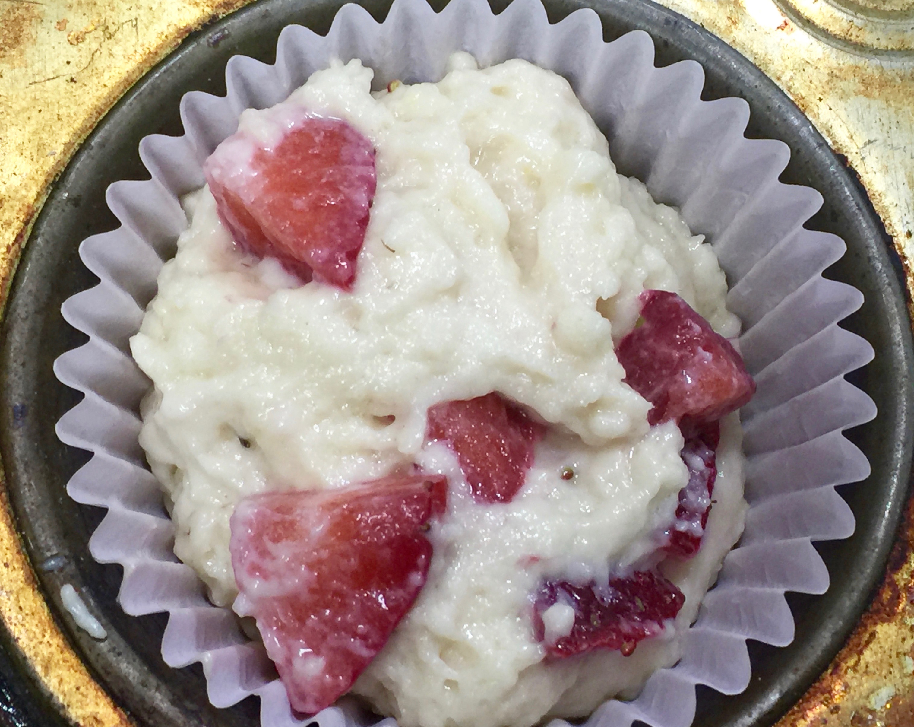 Lesson Learned 2 – The batter will be thicker than you think: I was surprised at how thick the batter was in this recipe. But the combination of a thick batter and strawberries creates the perfect balance for a moist and flavorful muffin. All the magic happens in the oven, so don’t worry about how thick the batter is.