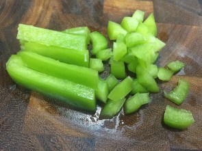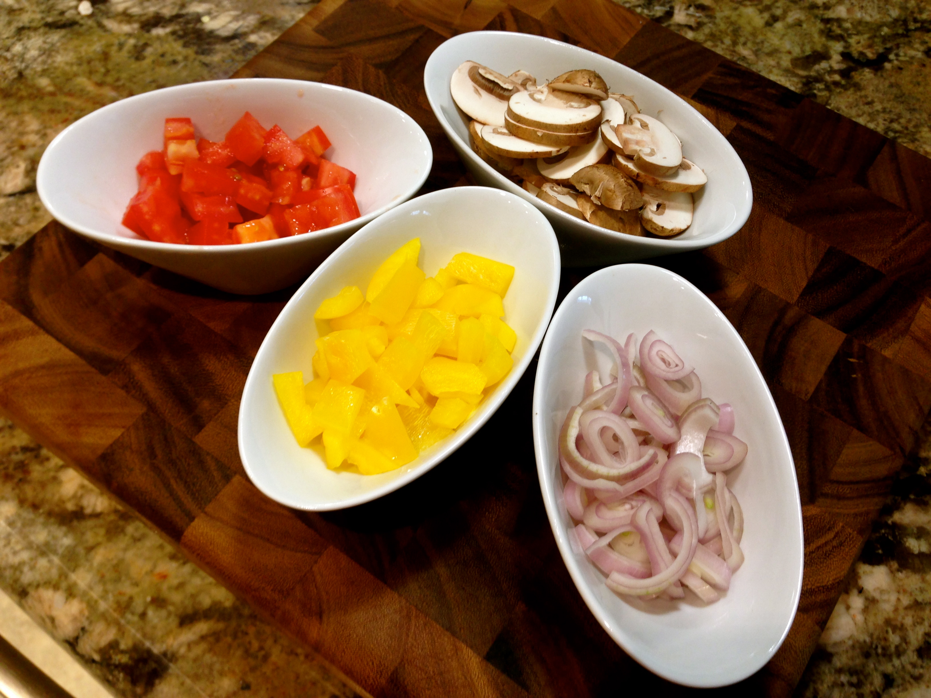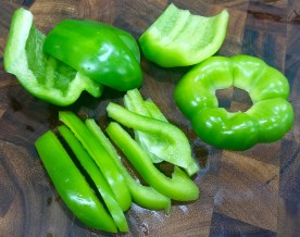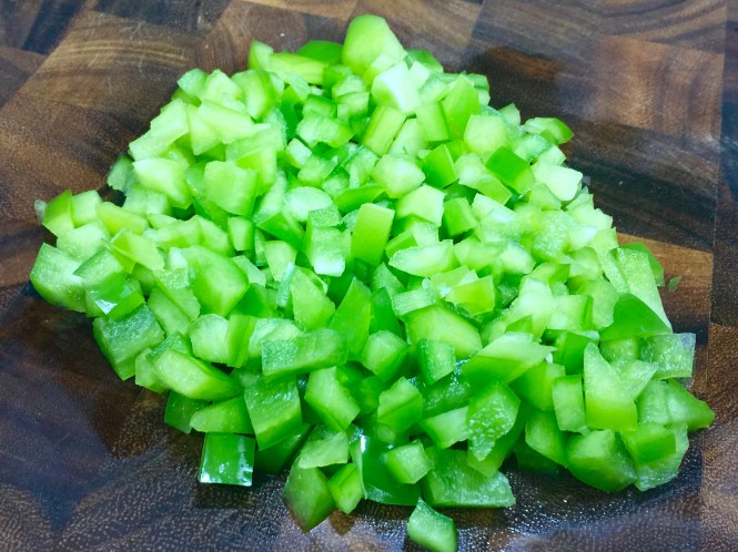 - Be creative with your toppings. When I order a “regular” pizza, I like mushrooms and green peppers on it. For this particular recipe I just added green pepper (make sure you chop it into small pieces). But I plan on trying it with mushrooms and probably onions as well.