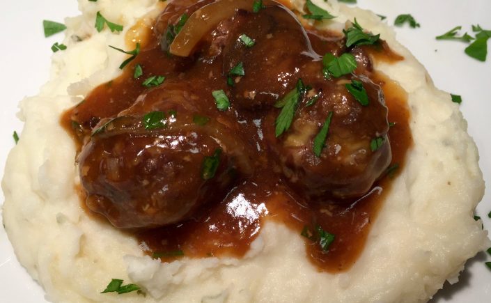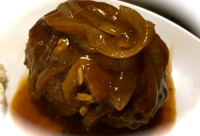 You want to be careful not to overload your ground beef with bread crumbs. You’ll dry it out. After making hamburgers and meatloaf for years and now salisbury steak, I know how the beef should feel so that it will not be overly dry. It should feel moist but not overly sticky. This is something you’ll get a feel for over time. Don’t worry about it. I always add about half the amount of bread crumbs the recipe calls for to begin with and add more from there. You can always add more and you don’t want to wind up with too much bread crumbs in the mix.
