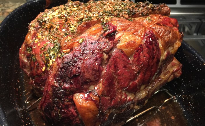 Lesson Learned 4 – A rub on the roast makes a difference: I used a rub consisting of olive oil, fresh garlic, fresh rosemary, thyme, and salt and pepper. What I found is the rub creates a delicious crust when cooked at those initial high temperatures. It added a fabulous flavor to the meat. I highly recommend the rub in this recipe. It tasted divine!