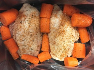 Lesson Learned 2 – This recipe roasts the carrots to crisp tender: Carrots are also tricky to cook and although I prefer mine to be crisp tender, some people prefer their carrots to be soft. If soft is your preference roasting them this way will not give you that consistency unless you either cut them into thin rounds or use small baby carrots. I cut my carrots into about 2 inch chunks, cut each chunk into half and then half again. This produced a somewhat softened crisp tender carrot, which I love.