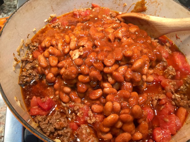 but you can make it has hot as you like. McCormick has a few varieties of seasonings and if you can’t find a seasoning mix that gets you the heat you crave you can always add red pepper flakes. This seasoning mix contains a blend of chili pepper, paprika, cumin, onion salt and garlic. I also add about a teaspoon of chili powder and this combination of seasonings gives us the kind of chili we prefer.