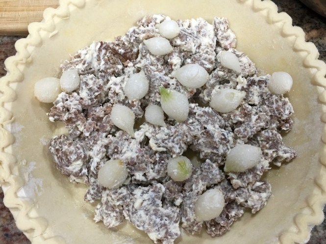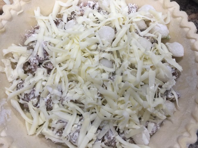 Lesson Learned 2 – Cook the breakfast sausage until you see only a little light pink: Remember the quiche is going to bake for an hour so the sausage will continue to cook during that time. I like to cook my sausage first, mix it with the cream cheese and let it sit a little before I put it in the pie crust. I normally use that time to put the egg mixture together.