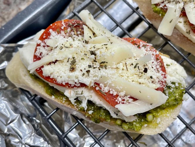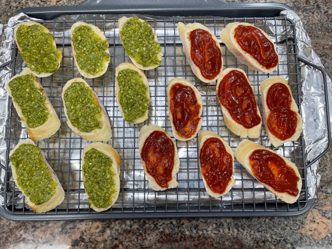 - Don’t overload the flatbread with pesto. All you need is a light spread over the bread. If you add too much it tends to overpower all the other ingredients.