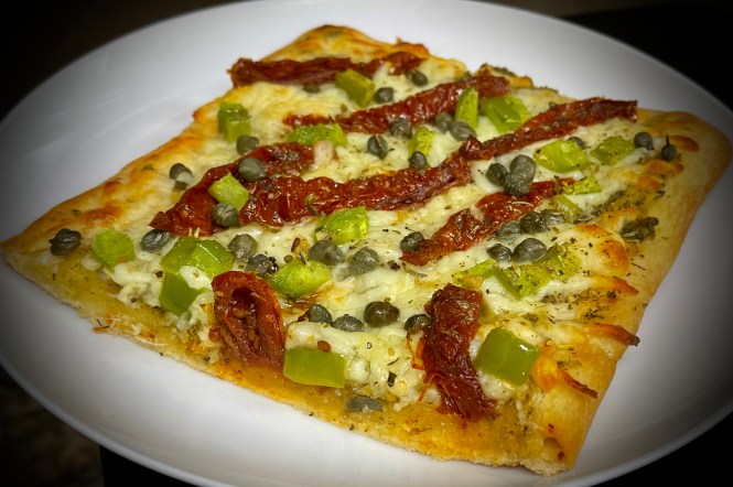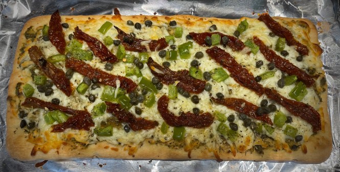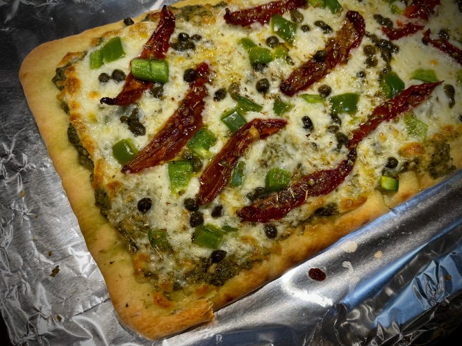 - Use sun dried tomatoes packed in oil. I found drizzling a little oil over the pizza once all the toppings are on and it’s ready to go into the oven adds more depth of flavor.