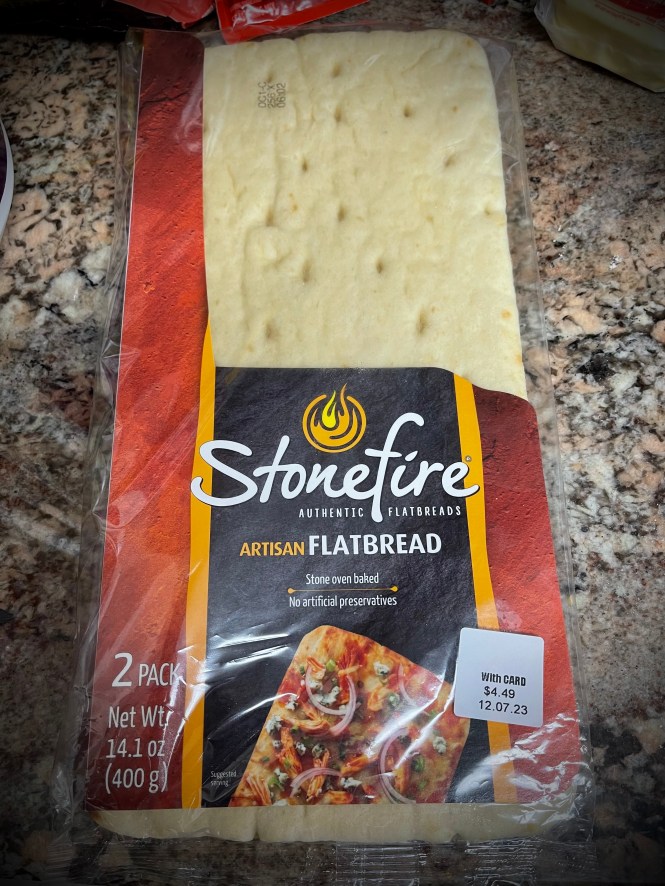 - I used Stonefire Artisan Flatbread. I prefer this because it basically serves as a blank canvas. You can try to use others, this is simply the one I prefer for this recipe.