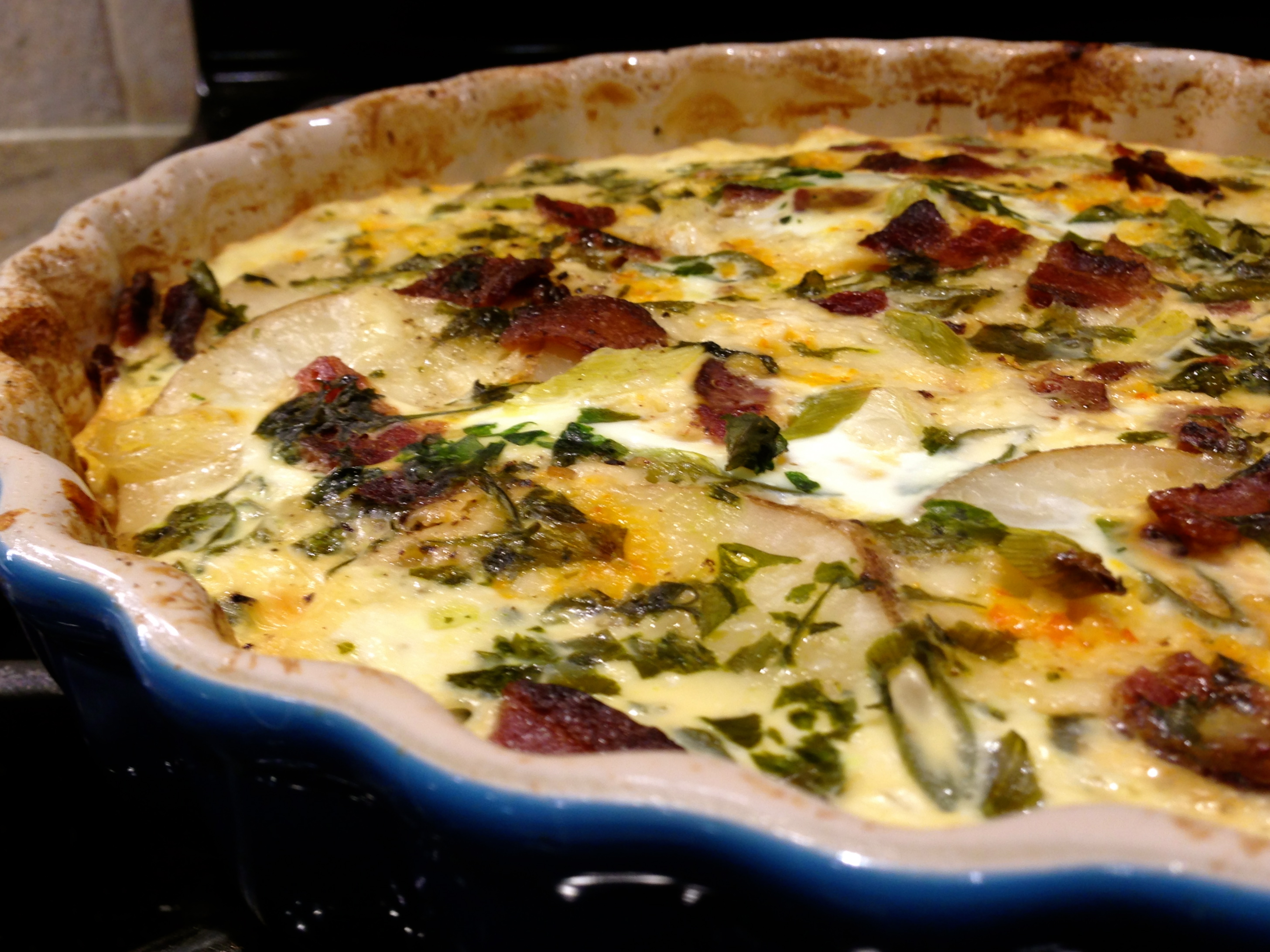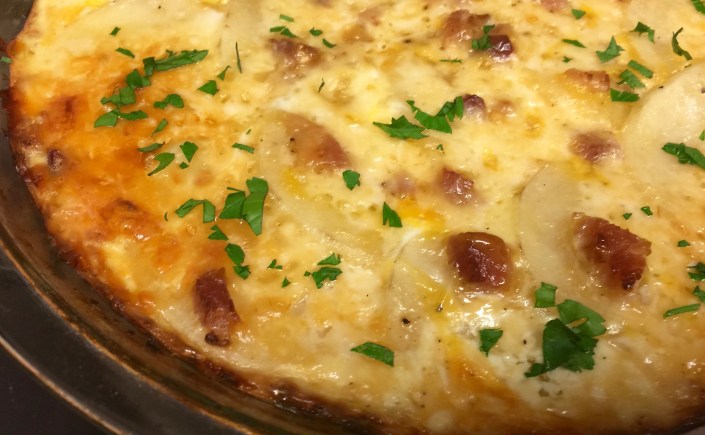Because they were so poor, my grandmother had to find ways to fill up the bellies of her kids while not spending a lot of money. A recipe like kugelis fit the bill. She could make good use out of a few potatoes, eggs, bacon and butter and turn them into a stick to your ribs kind of dish that would feed the whole family. In the end, she was noted for her kugelis and her home made bread, another inexpensive staple she made often during those times. I have not mastered her homemade bread and making bread from scratch is even trickier at high altitude, but I keep trying and someday I hope to post that recipe as well.