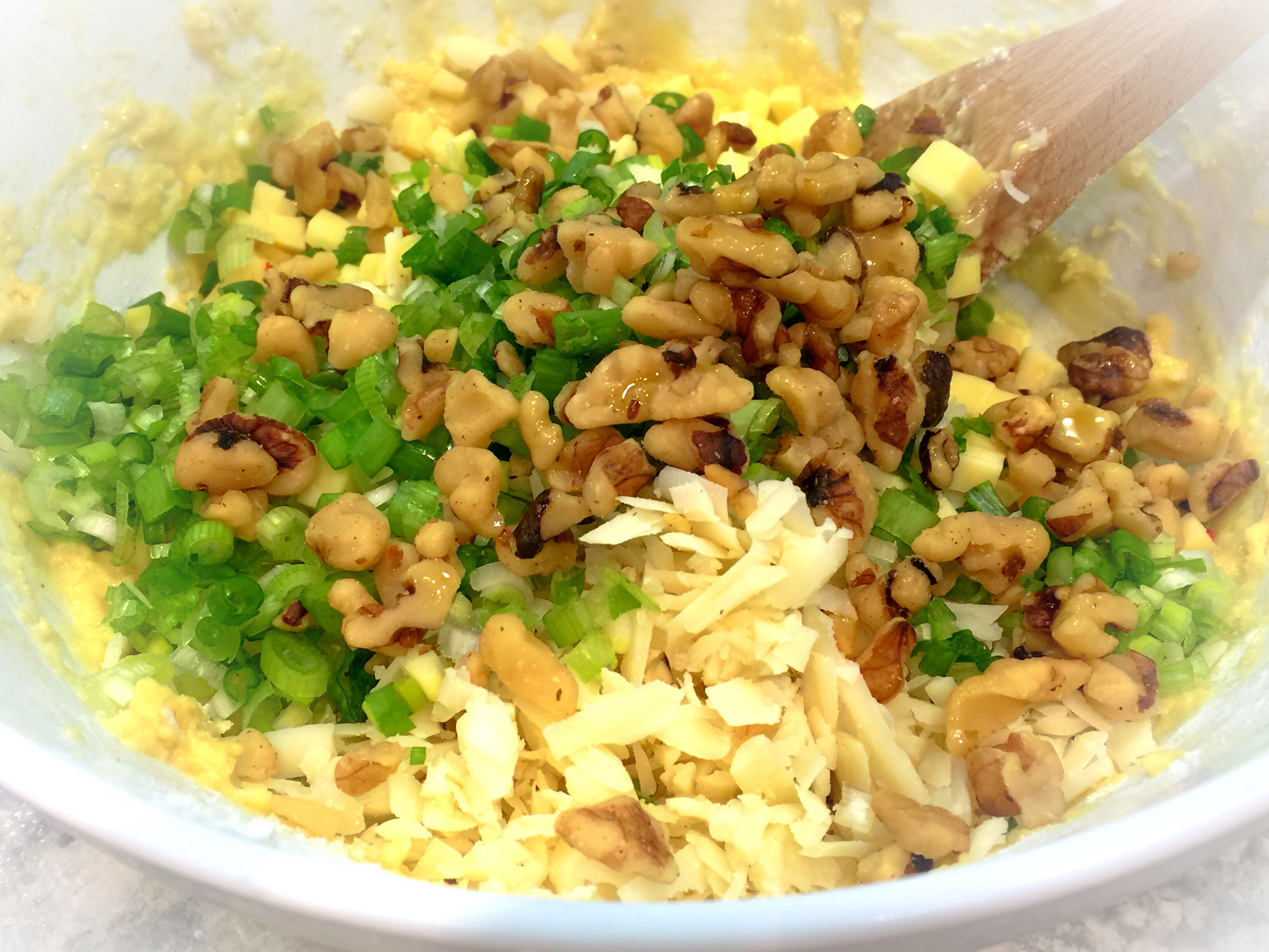 Lesson Learned 6 – Mix well and taste for enough salt: My mother used to say over and over again that you need to mix these ingredients really well. She usually mixed them for about 3-4 minutes and now so do I. This is not like other recipes that tell you not to over mix as the it will make the end result tough. So take your time and mix the ingredients thoroughly. You won’t be disappointed. My mother was also very specific about tasting the uncooked mixture for enough salt. Now keep in mind there is a lot of salt in the bacon so you don’t want the kugelis too salty. I always take a little taste before putting it in the baking dish just to make sure there is enough salt. I start out with one teaspoon at the beginning and add more after I’ve done my mixing if I think the kugelis needs it.