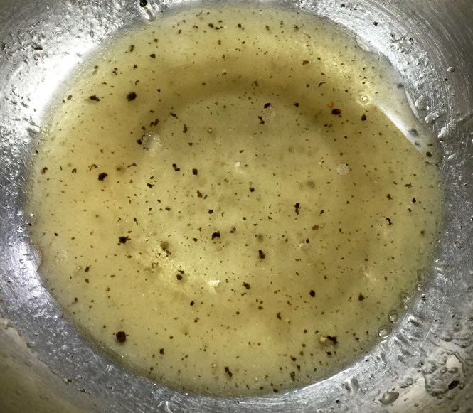 Lesson Learned 3 – Beat the eggs into submission: This is one of the tricks my mother taught me. You want your kugelis to be light and fluffy so you want a lot of air in your beaten eggs. You need to beat them for about 5-7 minutes with a hand mixer. I advise you not to guess when 5 minutes is up but to actually set a timer. You will not believe how long 5 minutes feels when you are beating those eggs. But you want a very airy consistency to the eggs as seen in the picture below.