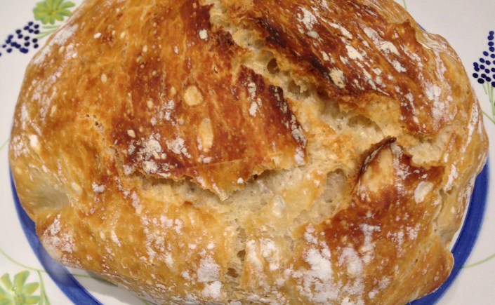 Take a silicone brush and lightly coat the bottom and sides of the skillet. You really don’t want a lot of oil sitting on the bottom. That will give you a greasy crust. And make sure you use a good quality olive oil. I used a garlic infused olive oil when I made the rosemary parmesan bread and a mild flavored premium olive oil for the cranberry walnut bread. If you don’t overdo the oil the crust will have just the right amount of crispiness and will taste heavenly. Just make sure you use a good olive oil. I prefer the crust in this method compared to the crust you get when using an enameled cast iron dutch oven (in the process you do not oil the pan). That crust, to me, is a little tougher. But don’t get me wrong, both methods produce wonderful bread.