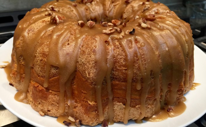 Put the pan on a cooling rack and run a knife around the sides of the pan. Let the cake cool for 15 minutes and then loosen the ring of the spring form pan. Remove the ring and let the cake continue to cool.