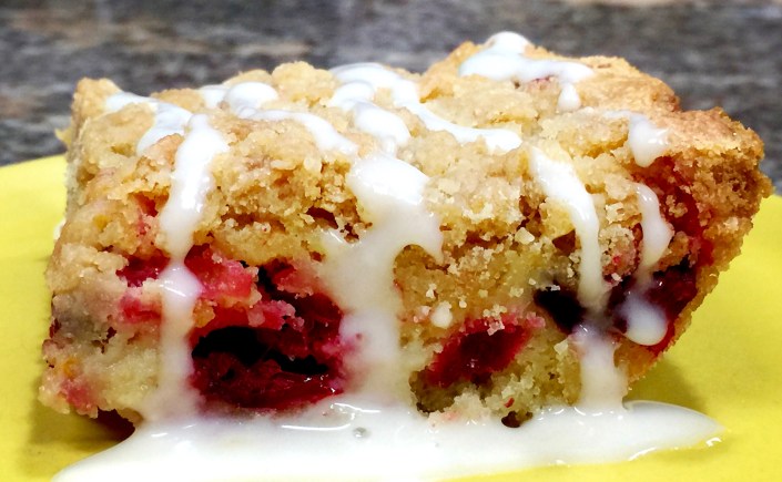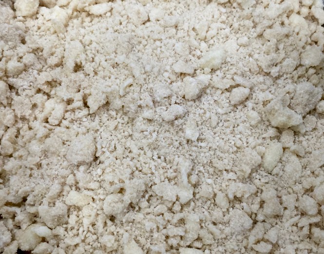 Lesson Learned 1 – My quest for the perfect crumble: I have to admit I’ve struggled with making a crumble that I truly enjoyed. I found most suggestions for making crumbles to be, for lack of a better term, yucky. More often than not I’ve felt that the crumble tasted too much like dried out lumps of flour. Have you experienced that as well? Well, no more. This combination for a crumble topping is the best yet. In my mind it balances the right amount of fat, sugar, flavoring and flour to give a sweet, but not overly sweet, topping for the cake that in no way tastes like flour. I suggest you use it on other cakes that you make with crumble toppings. I think I’ve finally found the right combination of ingredients for a crumble.