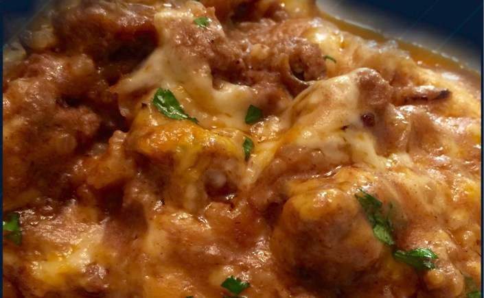 Lesson Learned 3 – Don’t over bake your meatballs: Although the meatballs look large, remember that there is a good amount of cheese inside them. So I would not bake them any longer than 15-18 minutes. Keep in mind you will also be simmering them for a few minutes in the gravy once you take them out of the oven, so they have plenty of time to get cooked through.