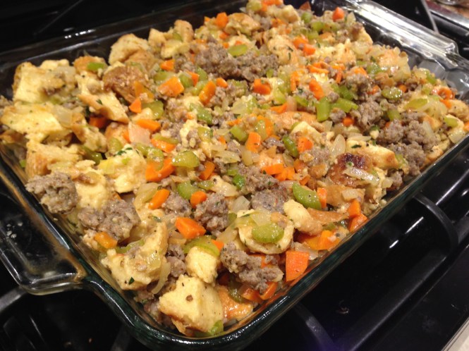 What would the holidays be without a stuffing/dressing recipe. So many times I hear from people that their family’s recipe is the best. But sometimes people are looking for a change or just for a good stuffing/dressing recipe. Well here it is! This is not my mother’s stuffing which I did love but never got from her. So in my quest to find a great substitute I landed on this recipe. It is fabulous and tastes even better if made the day before and reheated the next day.