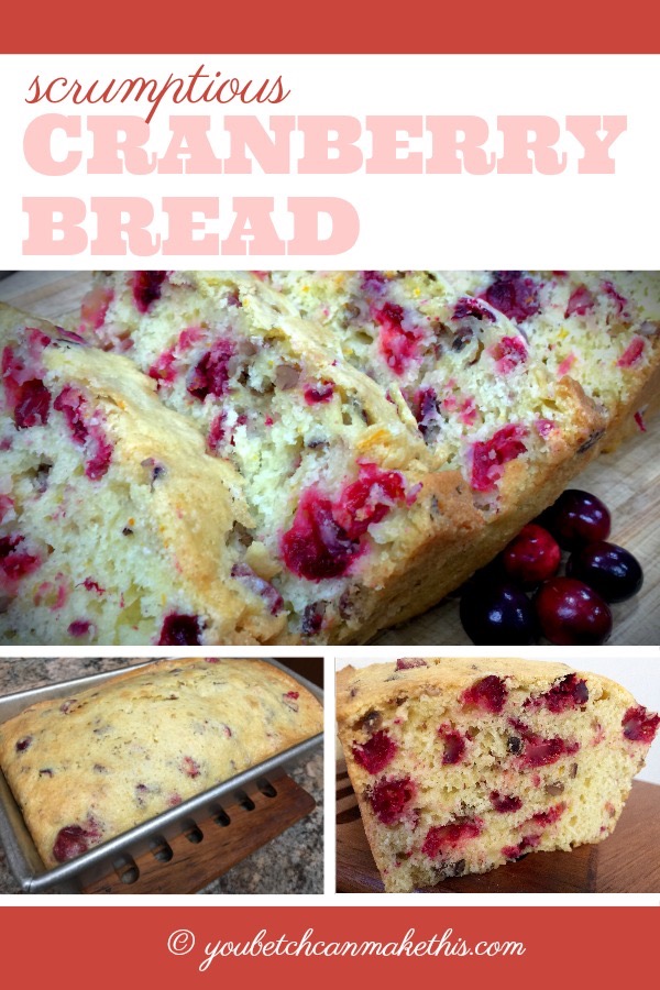 I make cranberry bread every year when fresh cranberries hit the grocery store. And for several years I’ve played around with this recipe until now that I feel I finally perfected it. There’s nothing that says the holidays like cranberries, and this sweet bread is a nice finish to a holiday meal.