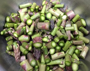 Lesson Learned 1 – Learn what parts of the asparagus spears you can use: Quite often you’ll see on television the way to trim asparagus is to bend it and where it breaks off is where you should trim your bunch. I’ve found that sometimes that wastes too much asparagus especially if you’re making soup. I learned early on that even with a very sharp knife, there can be a part of the spear that will very hard to cut – you almost always have to use two hands pressing down on the knife to cut it. That is the part you want to throw out. That still leaves some of the tougher parts of the asparagus, but as long as a knife will go through it without a lot of force you can use it in the soup. Keep in mind that soup is designed to use as much of the asparagus spear as you possibly can so don’t be afraid to use some of the tougher parts of the spear. As long as you can cut through it without a lot of force it will be perfectly fine for the soup.