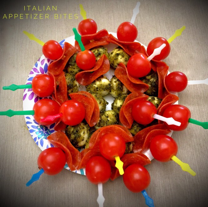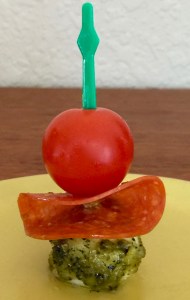 Lesson Learned 3 – I used a specialty feta cheese: You can certainly use plain feta cheese but I found a roasted pepper and basil feta cheese and I decided to use that. What I liked about this choice was that it added the flavor of basil to the appetizer without having to use basil leaves. You could certainly use basil leaves as well. If you do I would put the basil leaf on top of the pepperoni and then put the tomatoes on top of that. That way the leaf is secured. The great thing about this appetizer is that you can be creative and it will still be fabulous!