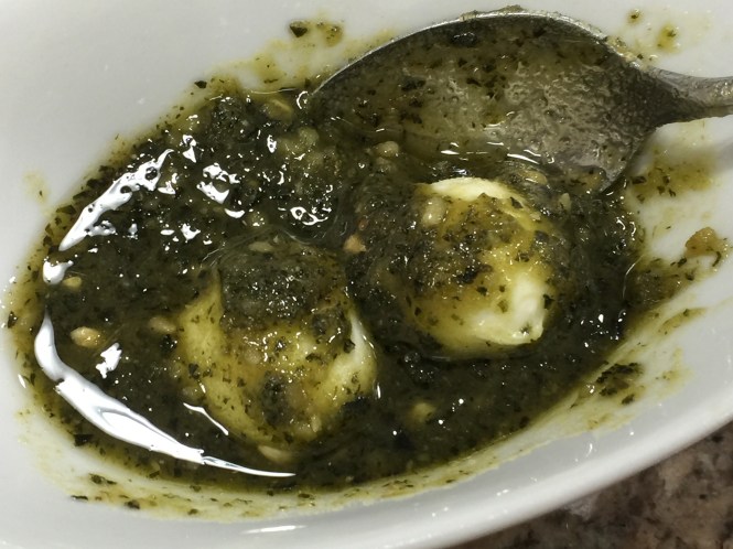 Lesson Learned 1 – This is a great way to use some of the homemade pesto you’ve made from growing basil: pesto is what adds zip to this recipe and homemade pesto is the best. If you don’t have your favorite