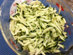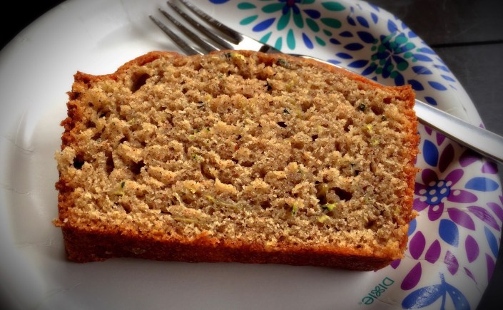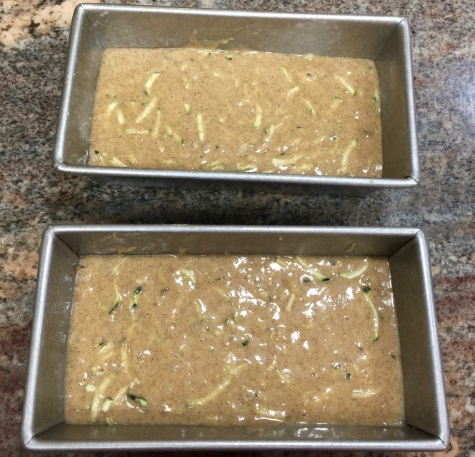 Lesson Learned 2 – Use a food processor to shred the zucchini: Although you can use a box grater, a food processor is a faster and easier way to shred the zucchini for this recipe. One medium to medium-large size zucchini will give you the two cups needed to make the bread. The food processor shreds the zucchini to just the right size so there are small strands in the bread. You don’t want to the zucchini shreds to be too big. They are designed to add moisture to the cake without providing any noticeable flavor. Also, make sure to pat down the zucchini shreds in your measuring cup. You want them slightly compacted.