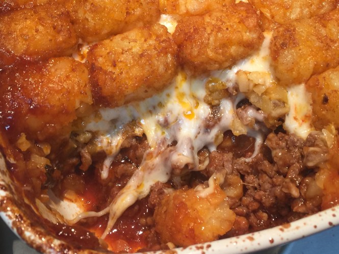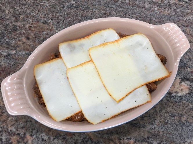 Lesson Learned 3 – Feel free to experiment with this recipe: Add ingredients to the ground beef that you and your family like. If you don’t like mushrooms, don’t use them. If you like sweet peppers, dice them up and use them. If you’re not a big fan of spicy don’t use the hot sauce. But if you want some real tang add some crushed red pepper to the beef. If you prefer pearl onions, add them. You can use cheddar cheese instead of muenster cheese (I find cheddar cheese to be somewhat greasy) or any melting cheese you prefer. The beauty is this recipe can be very versatile to include anything you enjoy.