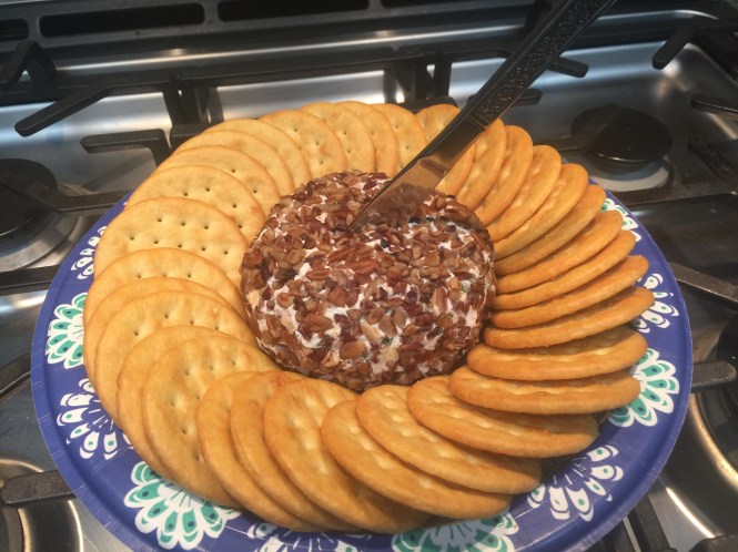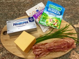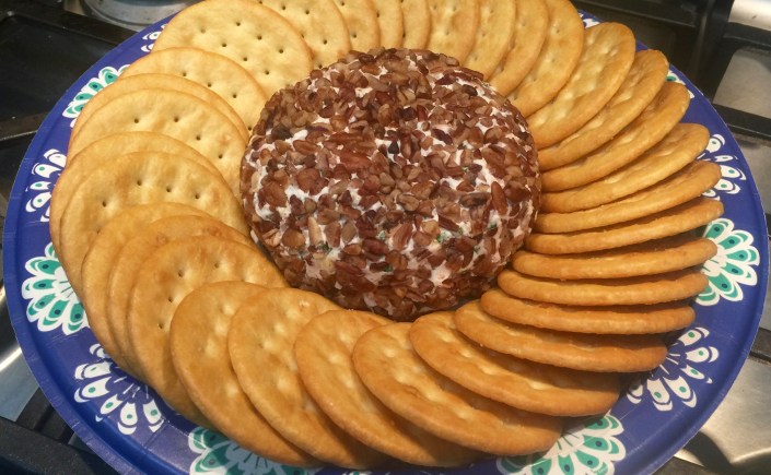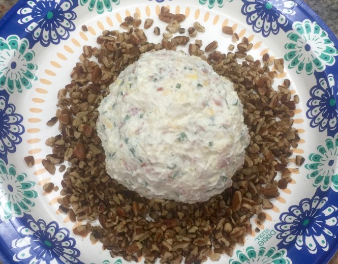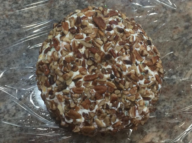 Lesson Learned 1: I found a great shortcut for adding bacon to recipes. The last time I was at the grocery store I noticed a package of Boar’s Head fully cooked bacon. It comes in a box and is not refrigerated. Inside there are two vacuumed sealed packages of cooked bacon with approximately 6 pieces per pack. One pack was perfect for this recipe. I avoided all of the grease and clean up associated with cooking bacon. Since then I’ve used it on salads and in other recipes. I love the taste and convenience of it. You may want to try some. It really makes putting together this cheese ball a snap.