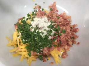 Lesson Learned 2 – Grate your own cheese versus using the packaged kind. Although I just touted the convenience of using precooked bacon, I don’t recommend using the grated cheese you get in a bag in any recipe. It may take a few seconds more to grate your own cheese but for flavor and health reasons I strongly recommend it.