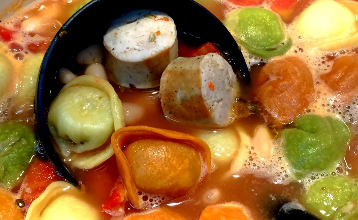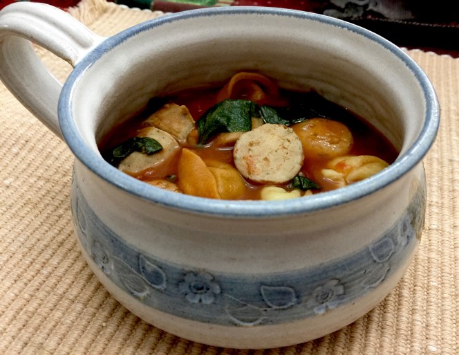 Lesson Learned 5 – Don’t be afraid to improvise: A recipe like this is ripe for improvisation. I used a tri-color three cheese tortellini but you an certainly choose any kind you like. I used chicken Italian sausage but if you’re skeptical a more traditional sweet Italian sausage will work. Or you can make sausage meatballs. If you want to spice it up a bit you can always add a little red pepper flakes or some cayenne pepper. When I warm up my leftovers I’m going to put some parmesan shavings on top. Even if you’re a novice cook, don’t be afraid to add your own touches or adjust the ingredients to your taste. Cooking is not like baking, you don’t need to be exact. Step out of your comfort zone and try a few things. You’ll be happy you did.