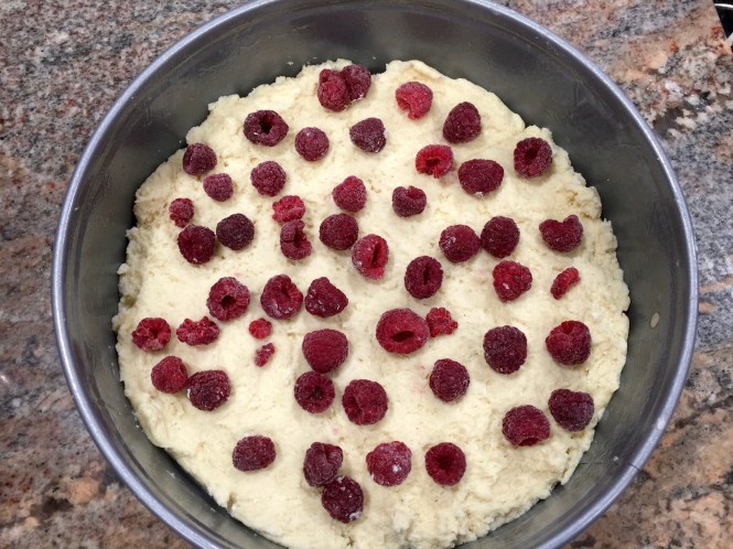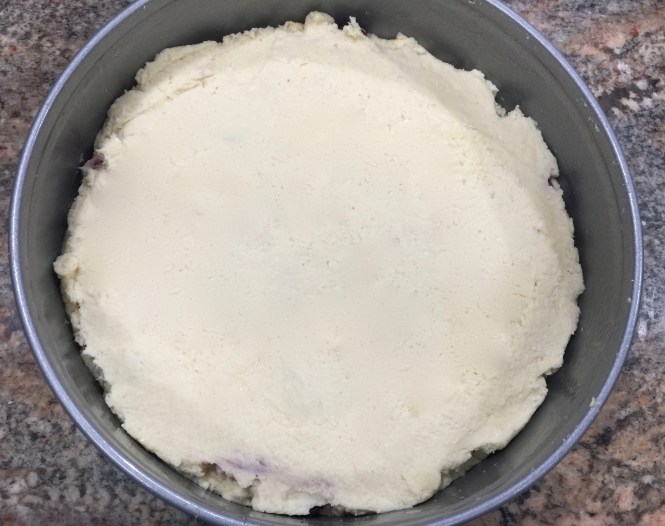 Lesson Learned 4 – Arranging the blueberries in the layers: This cake requires two blueberry layers, one on top of the cake batter layer and one on top of the cream cheese layer. When putting in both layers be careful to not let any of the blueberries touch the sides of your spring form pan. If you do you’ll find it difficult to clean the sides of the pan after baking. If you don’t you can still clean the sides of your pan, it’s just a little more difficult even though the pan has been greased.