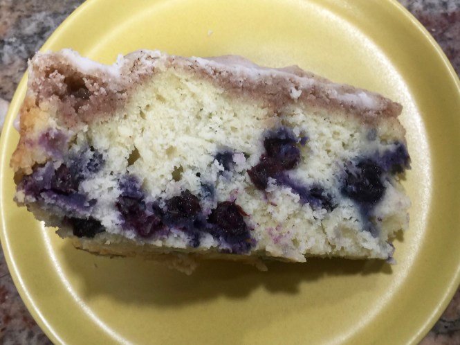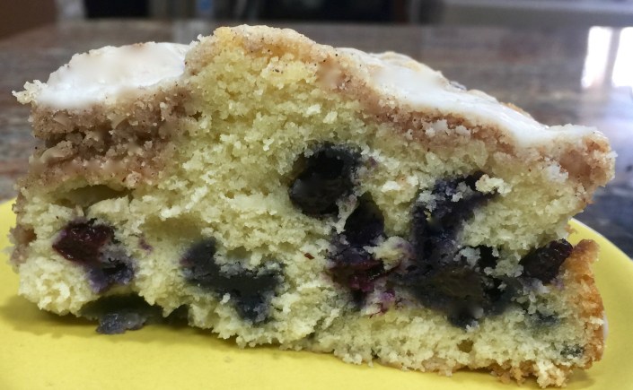 I have to say that I was more than pleasantly surprised at the outcome. What I liked the best about this coffee cake is the addition of the cream cheese layer. It provides a nice moistness to the cake and really kicks the cake over the top. So let’s talk blueberry cream cheese coffee cake…