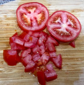 Lesson Learned 1 – I recommend prepping the tomatoes first: There’s a good reason for this. Tomatoes are filled with moisture and you want to give them an opportunity to release some of that moisture before you mix them with the other ingredients. You don’t want soggy pico de gallo. I chopped my tomatoes into small bite size squares and placed them in a strainer over a bowl. That way I could drain off their excess water. With the amount of tomatoes I used, I had about a quarter of a cup of liquid drain out of them. That’s quite a bit. And every once in a while I would stir them to release more water. Don’t worry if you don’t get all of the liquid out. You’ll get most of it out and that will be good enough.