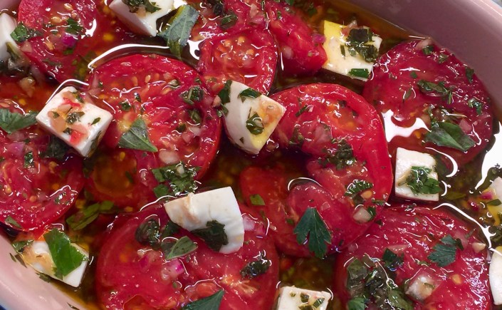 Lesson Learned 1 – Cut the tomatoes at least 1/2 inch thick: The marinating process will break the tomatoes down slightly so if you cut them too thin you’ll wind up with mush. Make sure to cut them thick to avoid that. Also make sure you don’t layer them but rather put them in a single layer. That way you’ll be able to get the full effect of the marinade.